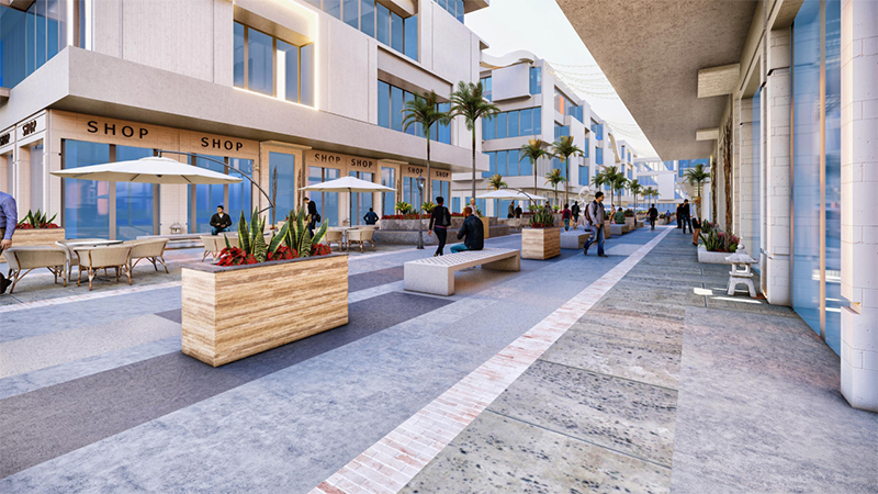 the parking areas, gym, restaurants, administrative and commercial spaces.
